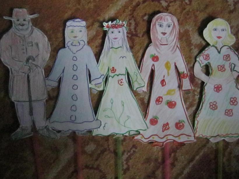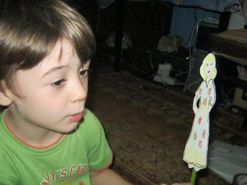 -papusile le-am desenat pe carton si in spatele lor am lipit un pai pentru a putea fi manuite ca niste marionete.