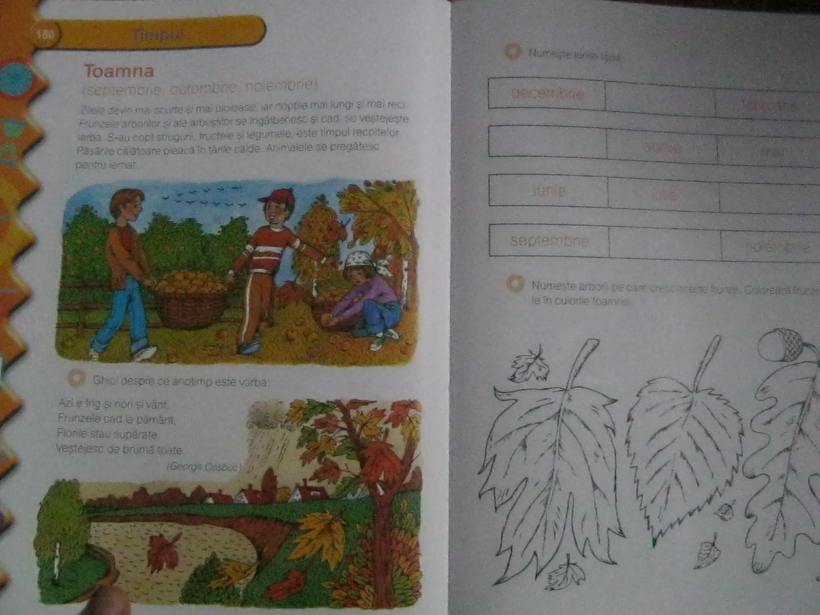 Dragii mei, eu sunt Toamna…unii oameni ma asteapta cu multa bucurie…pentru ca acum este vremea cand se culeg roadele , gospodinele incep sa pregateasca camarile cu bunatati (conserve , compoturi, dulceturi) pentru iarna. Deja, zilele se scurteaza, timpul se raceste. Ploile devin dese . Copiii incep scoala sau gradinita.Frunzele se ingalbenesc si cad din copaci. Dar, joaca cu frunzele este o mare bucurie pentru cei mici. Voi v-ati jucat vreodata cu frunze? 🙂 Lunile in care domnesc eu sunt: SEPTEMBRIE, OCTOMBRIE si NOIEMBRIE.  Stiti voi ca acum este perioada in care domnesc eu, Toamna? Tocmai de aceea va las….am atat de multe de facut….chiar ma duc sa ajut niste veverite sa culeaga niste ghinde. Isi fac provizii pentru iarna. La revedere!!”
