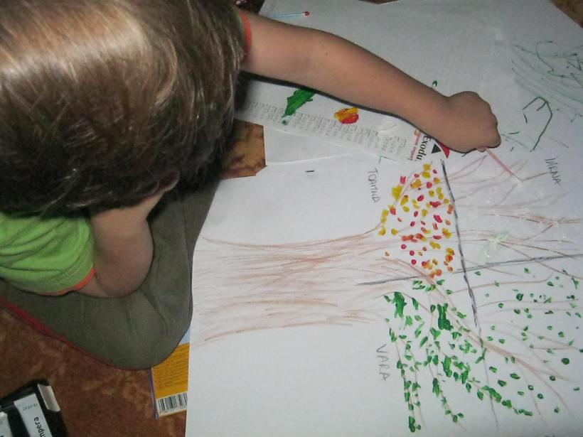 Si mama, auzind cele intamplate in visul lui D. ii spuse :”hai sa desenam un copac al anotimpurilor ca sa nu uiti tot ce mi-ai povestit! „
