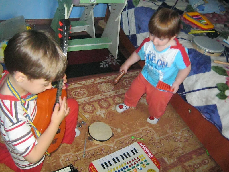 A urmat apoi micul nostru concert cu multe cantece pentru copii, timp in care se acompaniau singuri la instrument, sigur si eu am cantat cu ei 🙂 cred ca ar fi cantat si doua ore, dar mami mai avea cate ceva de facut.