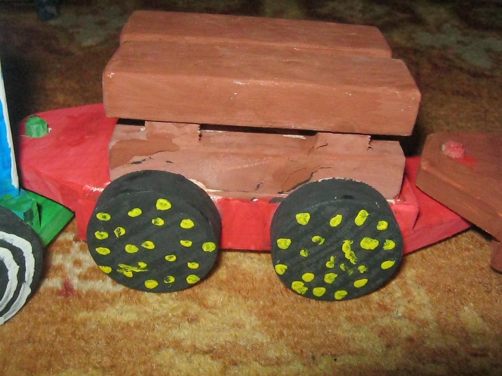 Sigur, dupa cum vedeti are cateva pete, nu am putut sa acopar toate greselile , dar nici nu am vrut….daca il vor pastra isi vor aduce aminte cu drag de trenuletul vopsit de ei in copilarie 🙂