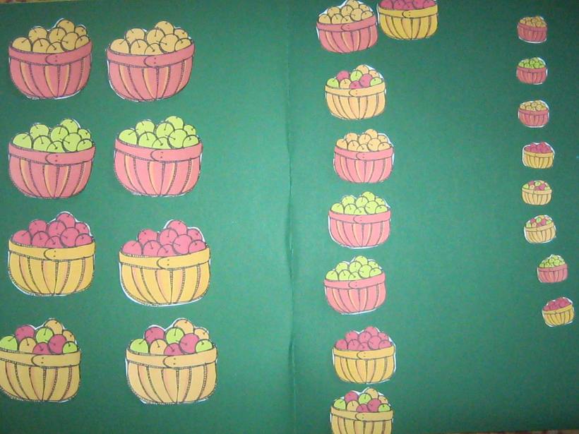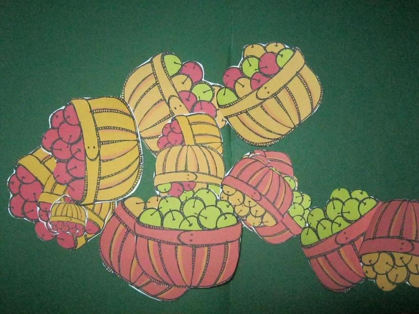 Am sortat cosuri de mere dupa marime ( o activitate mult prea usoara pentru D., dar ii place uneori sa faca si activitati mai de „bebelusi” cum le spune el 🙂