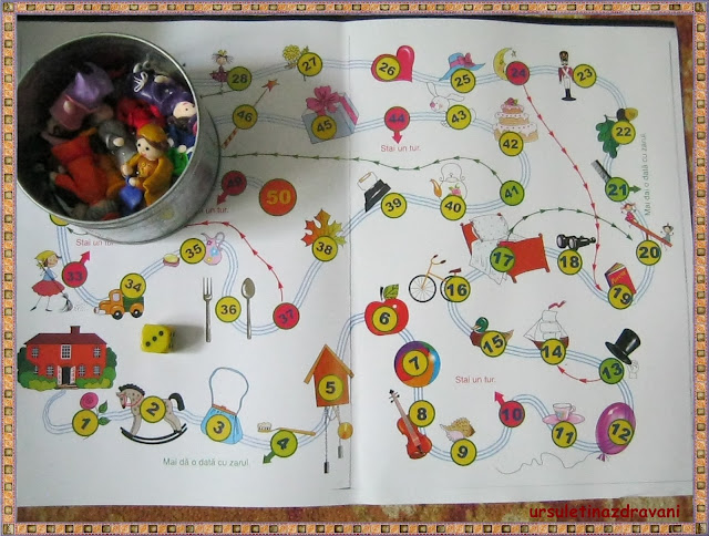 La sfarsitul cartii, este un joc  frumos pe care l-am imprimat in format A3. Ca si pioni, am folosit batranelele noastre.