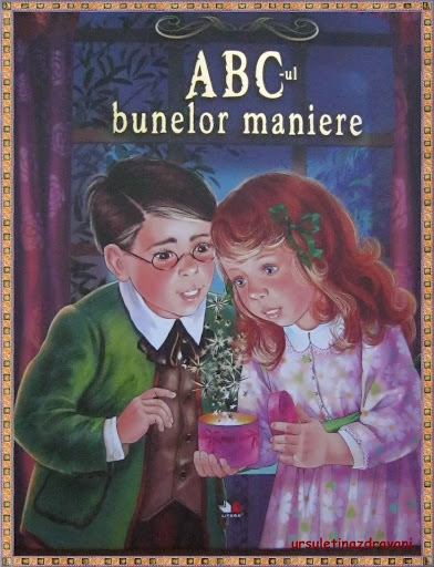 Ideea a pornit cand am primit o carte deosebita…de fapt tot articolul se va centra in jurul acestei carti. O carte, cu litere aurii si coperta deosebita …”ABC-UL bunelor maniere”, de Nicoleta Ciub. Cand am cumparat-o nu zarisem decat 2-3 pagini din interiorul acesteia, dar stiam ca va fi minunata…mai aveam doua carti din aceasta serie si am fost tare incantati de ele: ABC-ul curajului si ABC-ul sanatatii.