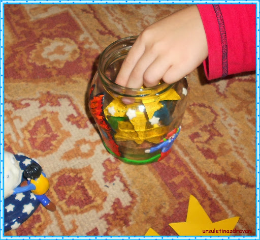 Am facut pentru ei un borcan surpriza..cu scene din carte. Luna si stelele sunt din argila fosforescenta si noaptea se vad tare frumos.