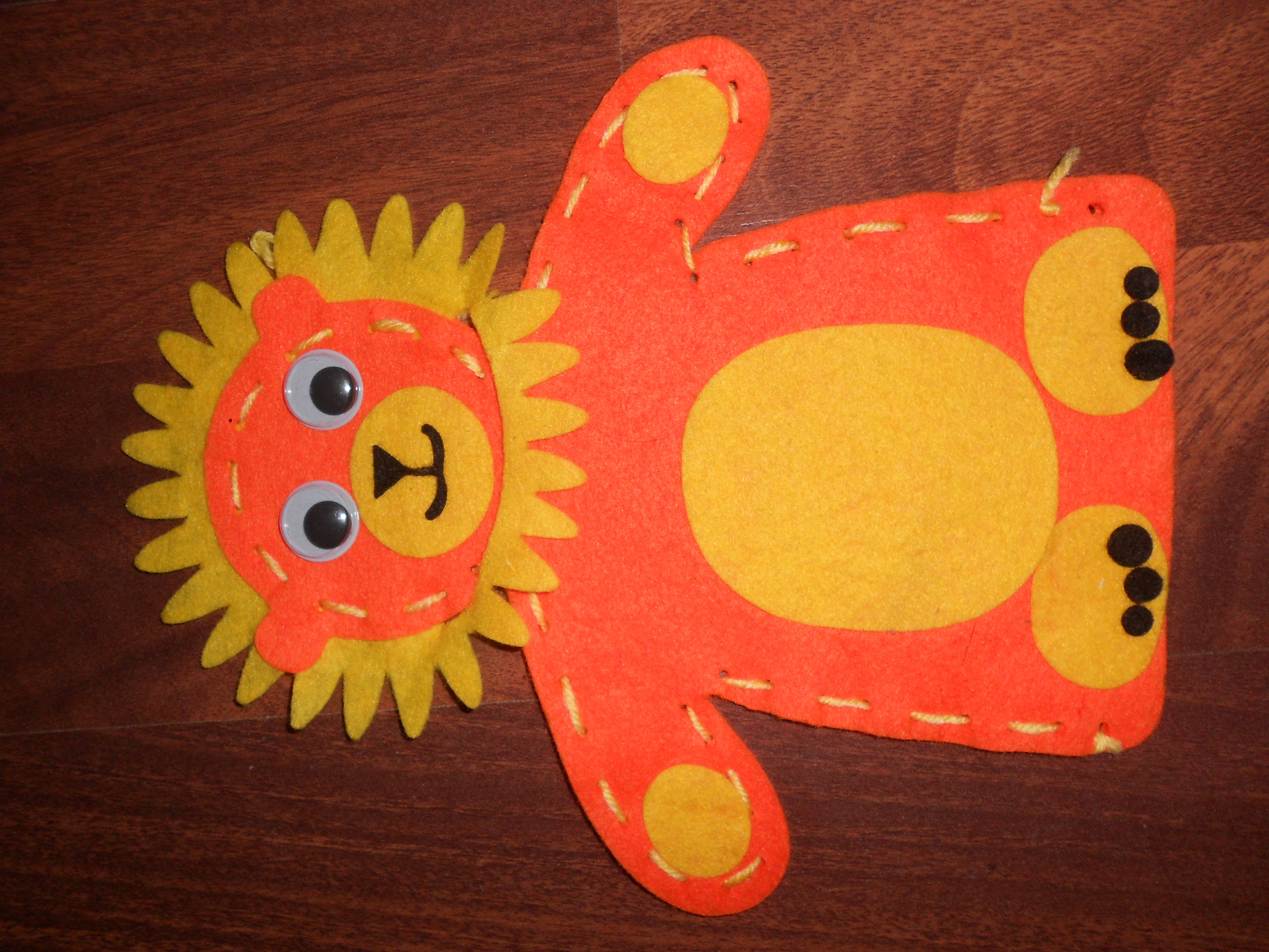 De exemplu, uitati o manusa din fetru facuta de noi ( este cusuta cu un ac mare din plastic de D. ).