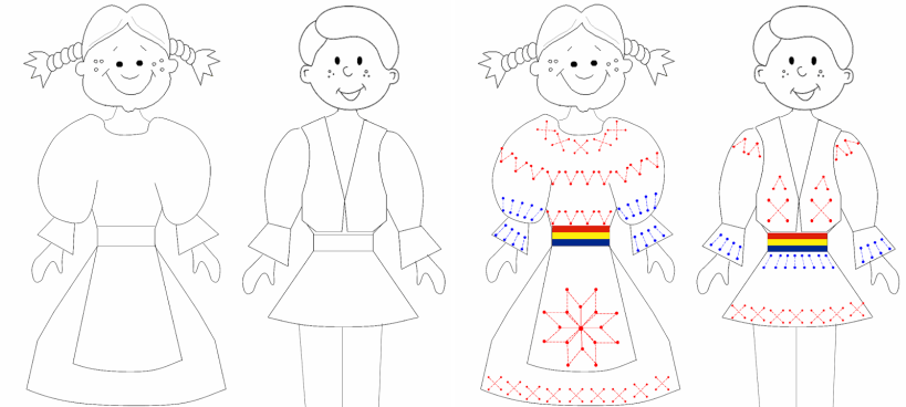 Am găsit mai multe imagini frumoase. Acestea pot fi colorate sau copiii mai mari se pot întrece în măiestrie și le vor coase detaliile cu acul.