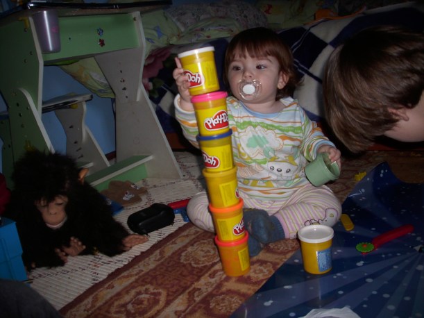 Fiecare jucator ia cate doua carti, daca nu sunt pereche le pune in acelasi loc, incercand sa tina minte locul in care le-a pus. E destul de dificil pentru un copilas de 4-5 ani,dar D. a reusti totusi sa faca cateva perechi.