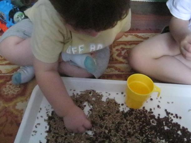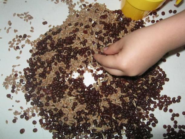 PRima data, am plantat boabe de grau in pamant (sigur pamantul nostru erau niste bobite de ceara inchise la culoare).