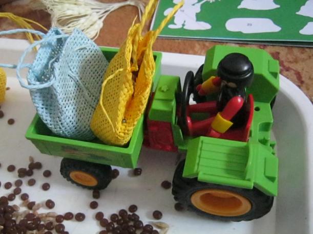 Baietii agricultori au umplut sacii cu grau si ne-am pregatit sa mergem la moara :).