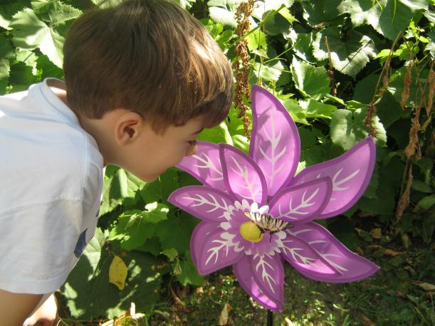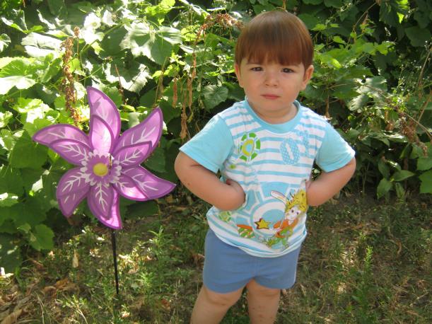 L-am intrebat pe A. daca nu vrea sa faca o poza cu fluturasul. A. imi spune: „posa??? da”.
