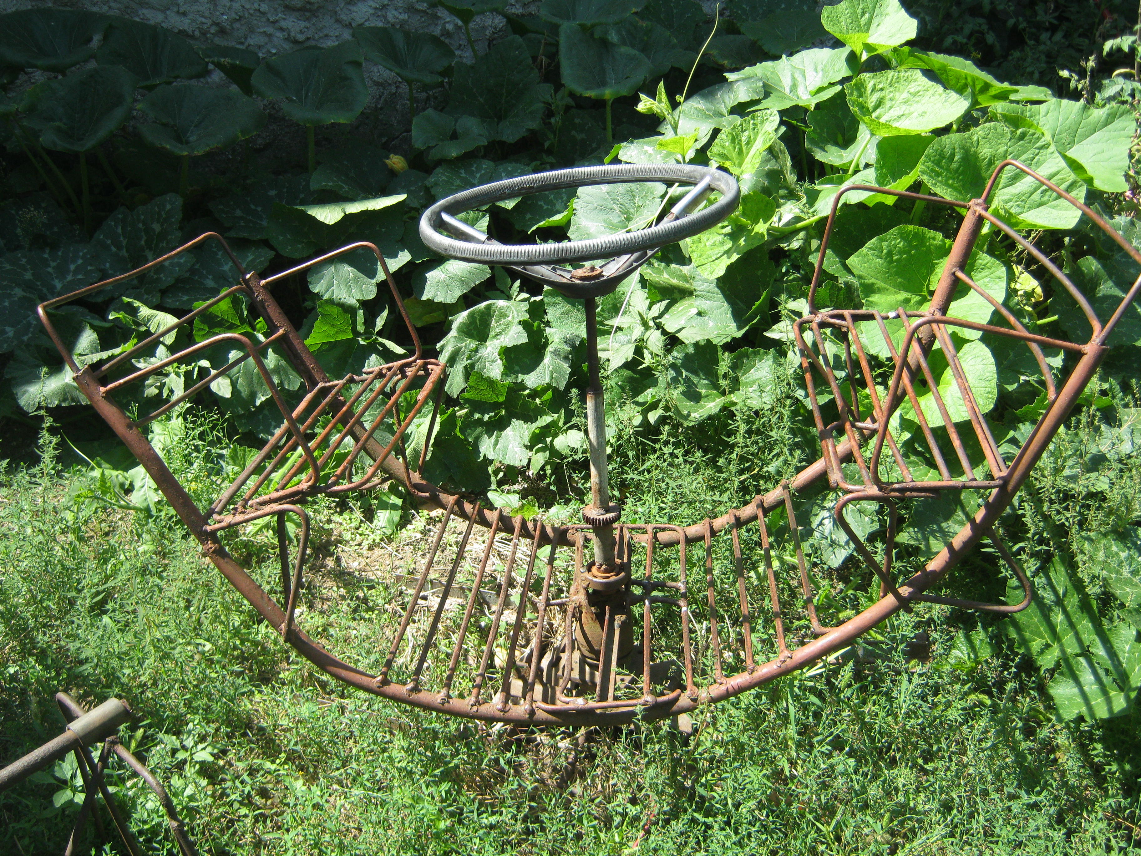 BUnicul patern le-a facut si un mini loc de joaca construit chiar de el: au o masinuta inedita, cu un volan urias ce se roteste, un balansoar , un calut din lemn, un leagan…