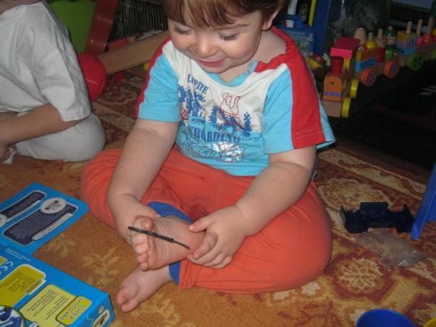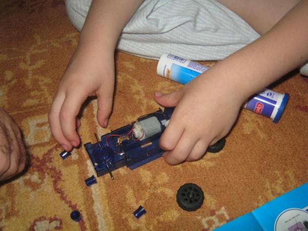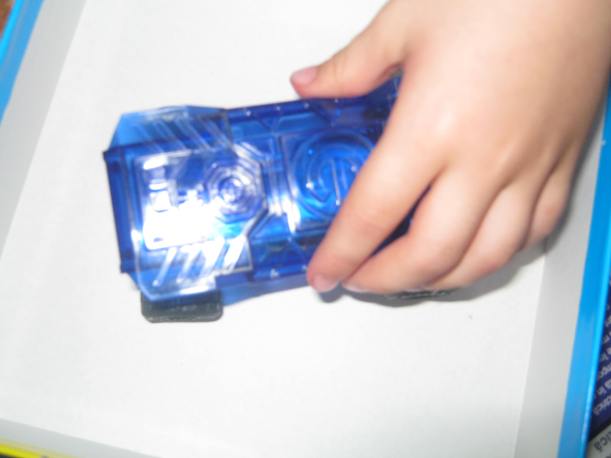 Ei, a doua zi….pestele a murit :(….nu mai inota…i-am schimbat bateriile. Are pe corp doua butonase mici…sunt un fel de senzori…cand ating apa, se misca codita si incepe sa inoate. Daca sunt apasate, tot asa da din codita. Cand il scoteam din apa si apasam butonasele, mergea…cand il bagam in apa…ramanea la suprafata si nu mai facea nimic. Tati, care este tre priceput la repararea jucariilor, a si dat diagnosticul 😀 : „ii intra apa la baterii! ” Si asa era…intra apa, facea contact cu bateriile si nu mai mergea. Asa il primisem…cand i-au fost puse bateriile , s-a rupt un piciorus de la capacelul protector.