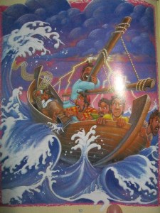 2. Inainte de lectie, am asezat in fata lor un decor, cu o barca, confectionata dupa modelul din cartea BIblia, confectionam si invatam (pag. 41-42). Nu uitati ca am incarcat-o aici si o puteti folosi si voi.