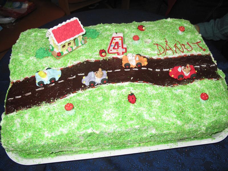 Am evoluat putin:))) in ceea ce priveste ornarea torturilor….dar m-a si motivat faptul ca de acum, D. este atent la tot felul de detalii si a inceput sa aiba si el pretentii…a fost extrem de incantat cand a vazut soseaua cu masinute de pe tort. Nici unul dintre musafirii nostri (care aveau intre 3 si 14 ani) nu a dorit sa guste ornamentele:)) doar sa le atinga si sa se minuneze de ele:).